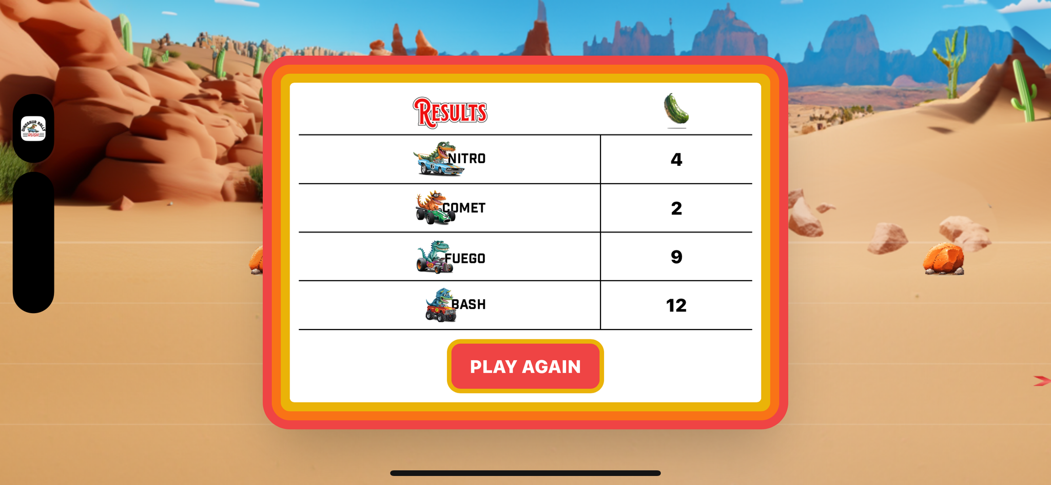 Dinosaur Rally Rush is a fun and engaging game for all ages. Select your favorite Dinosaur Rally character, and out maneuver the field in order to collect the most pickles and win!